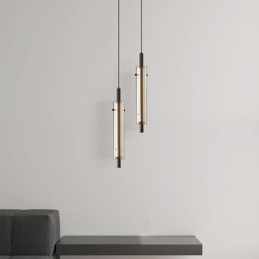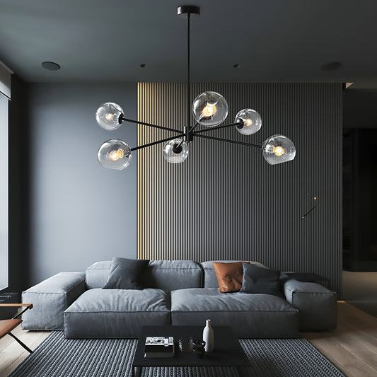 Lámpara colgante de vidrio y detalles en aluminio negro Kasarani