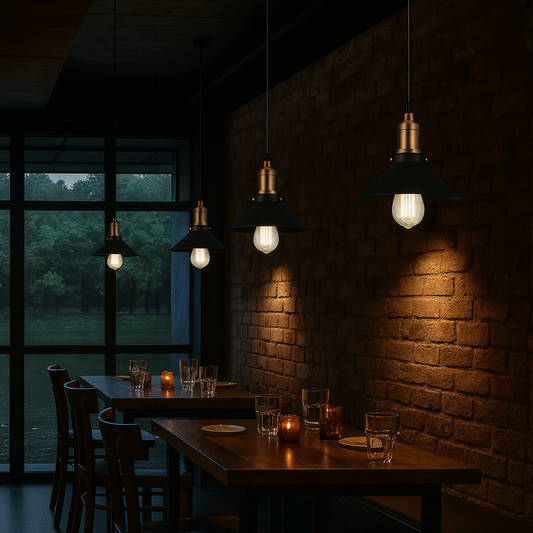 Lámpara colgante negra con detalles en color dorado Brooklyn Metal