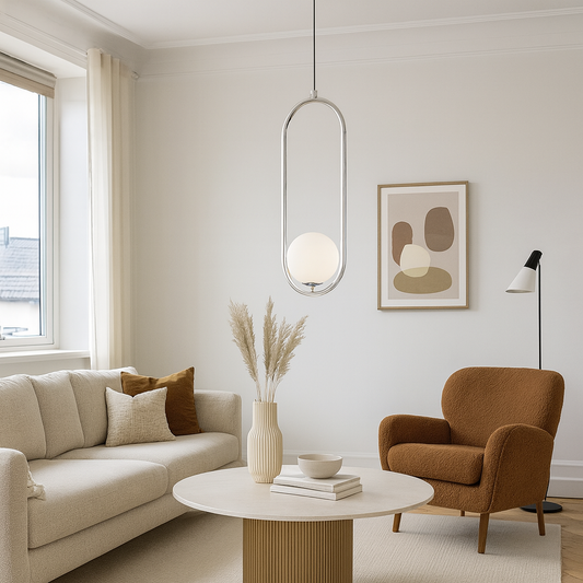 Lámpara colgante de metal y vidrio plateada Oliva 1