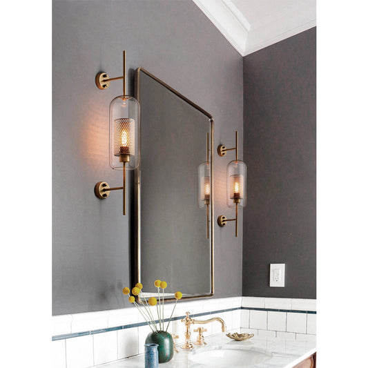 Apliqué de metal dorado y vidrio champagne Lantern 1