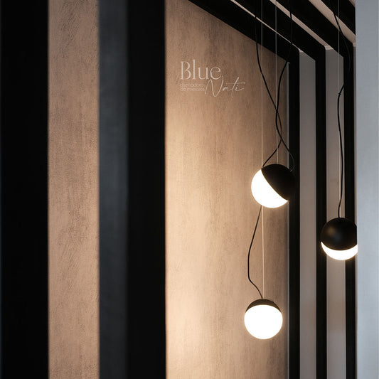 Lámpara colgante de aluminio negro y vidrio Ball 2 D20