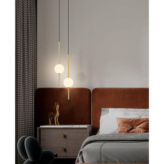 Lámpara colgante led de vidrio y aluminio dorado End Light 2 Esferas