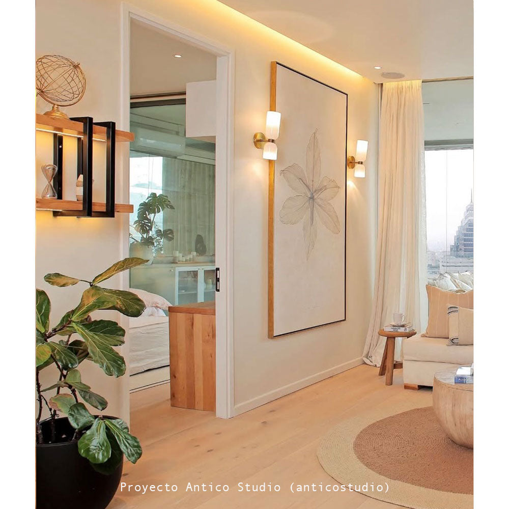 Apliqué de vidrio, cuya forma y diseño entrega a cualquier lugar, una iluminación simple y moderna.