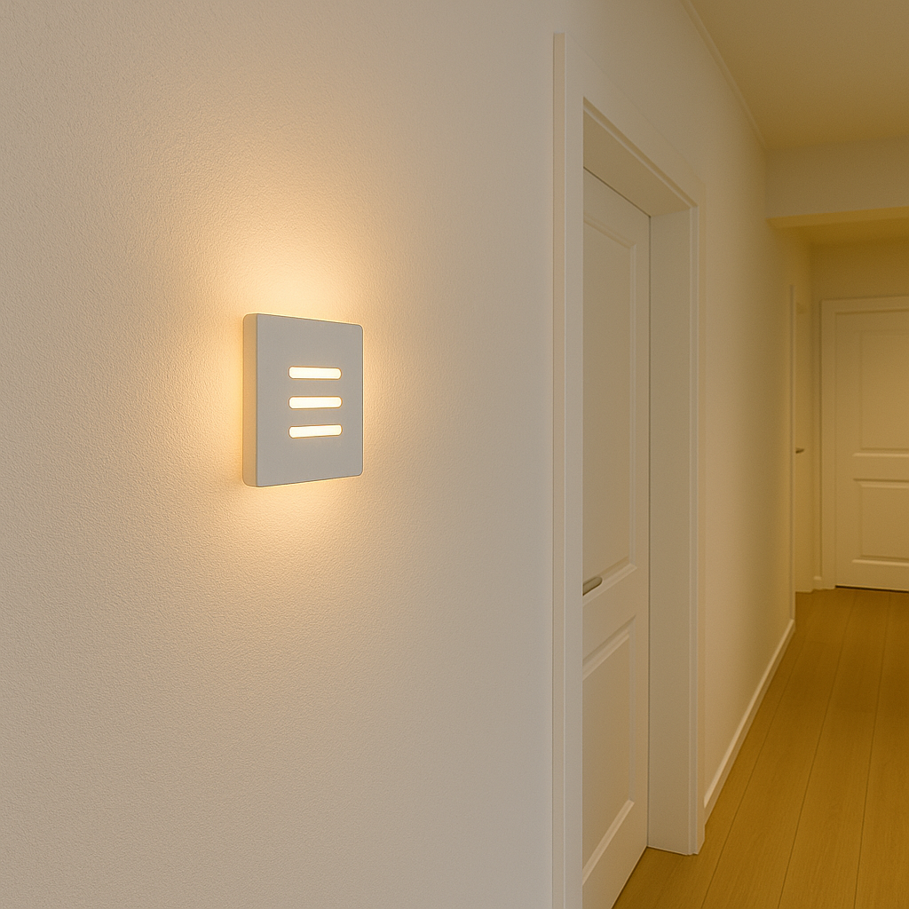 Apliqué cuadrado de aluminio blanco. Entrega a cualquier espacio una iluminación simple, moderna y cálida.