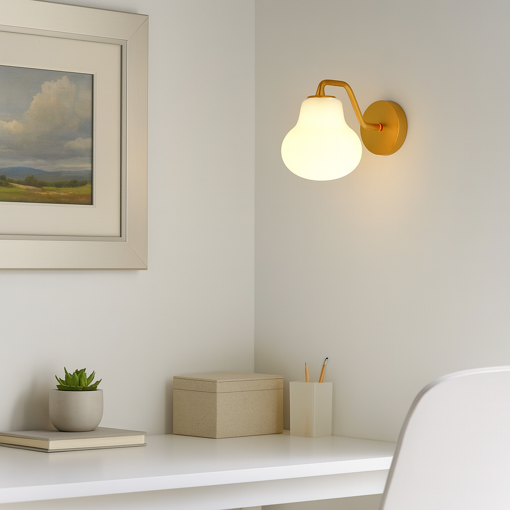 Apliqué en vidrio opal de diseño clásico y cálido.
