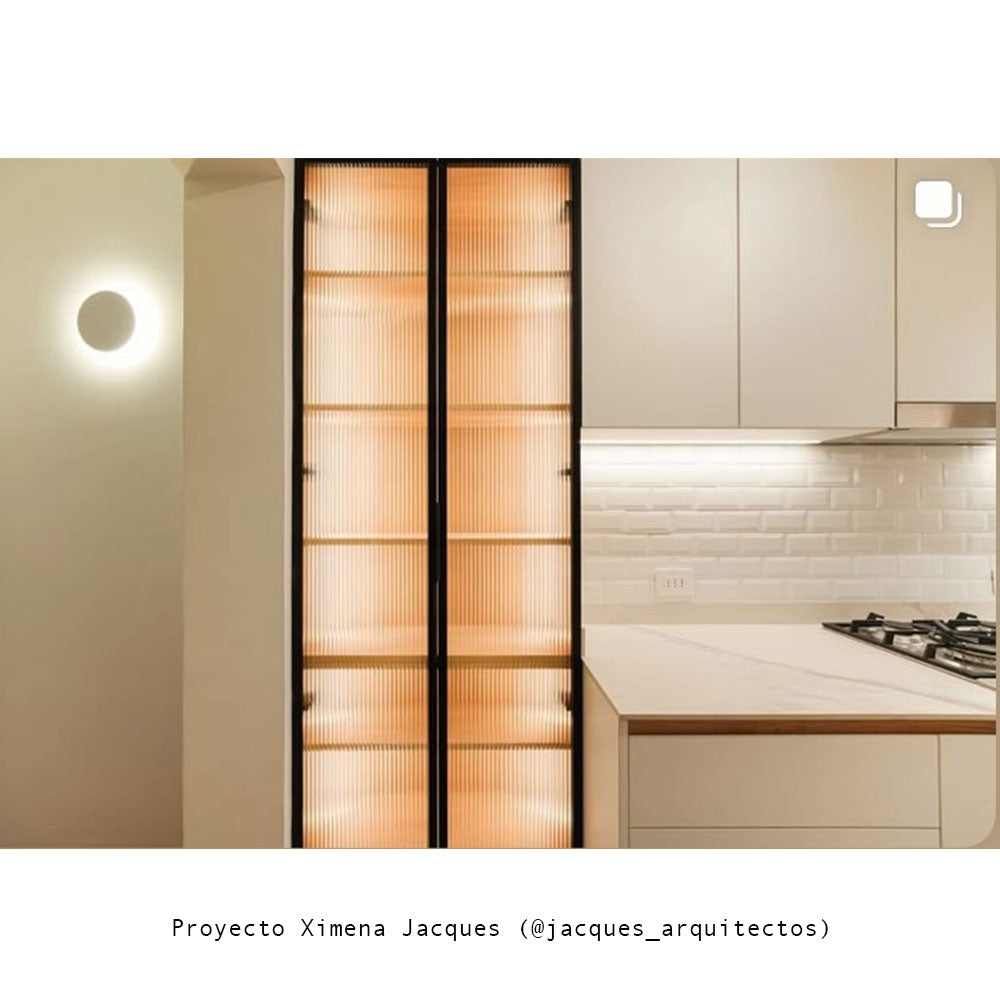 Apliqué de luz indirecta con superficie de aluminio color blanco.