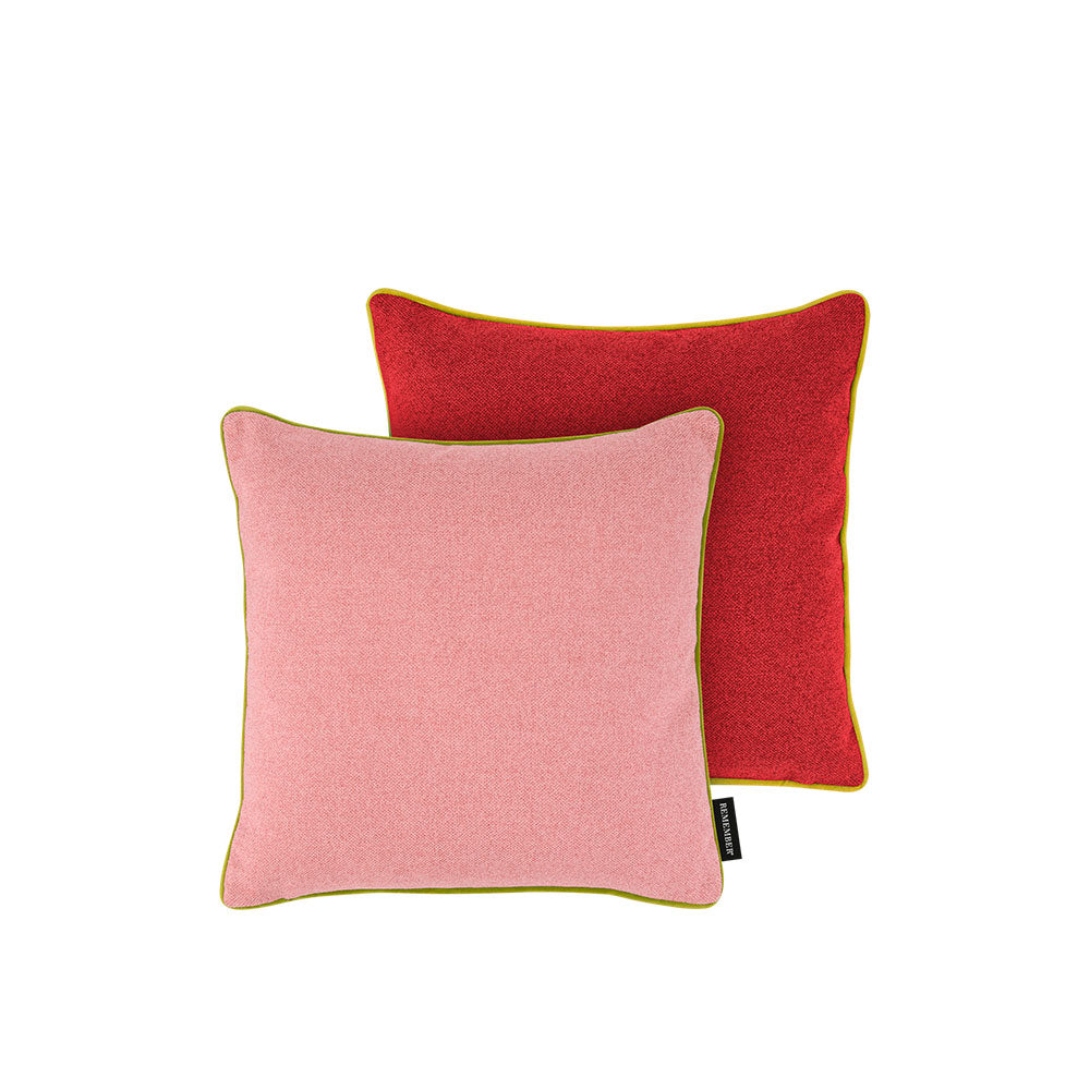 Cojín con ribete de terciopelo alrededor, con cremallera. Incluye relleno.