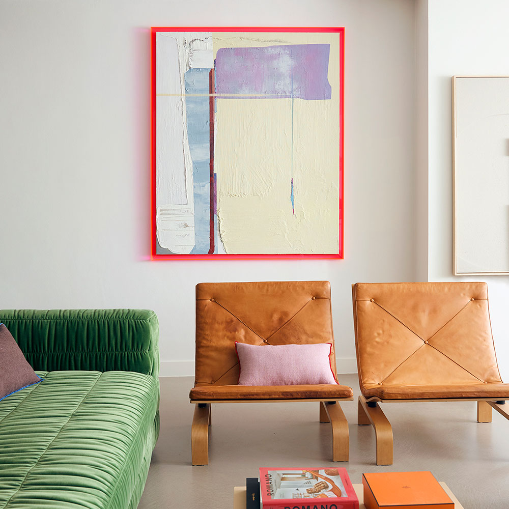 Cuadro, que destaca por su marco de acrílico, dándole un estilo distinto a tus espacios. Los colores del marco de acrílico crean un contraste, transformando la exposición de arte, en una pieza contemporánea y llamativa.