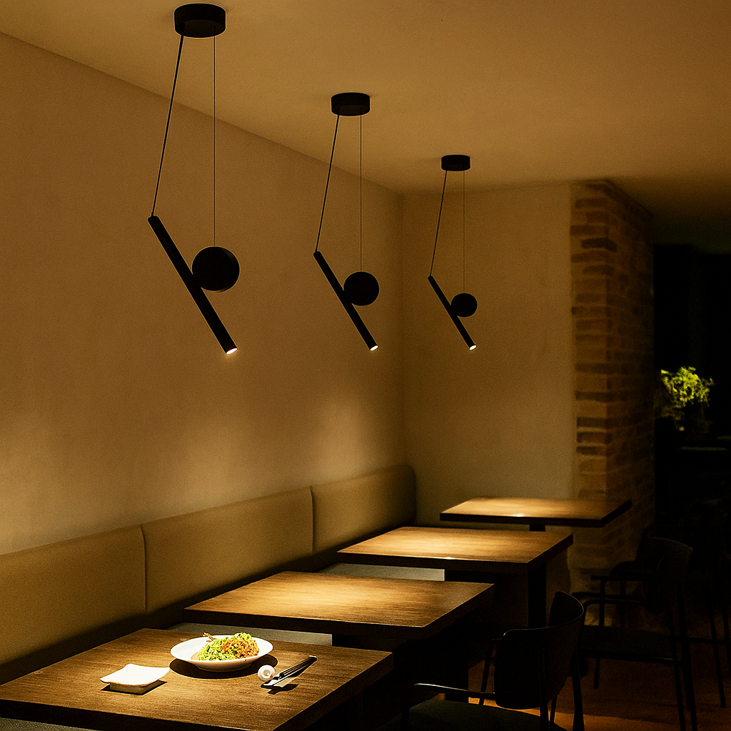Foco colgante y dirigible de aluminio negro. Entrega a cualquier espacio una iluminación simple y moderna.