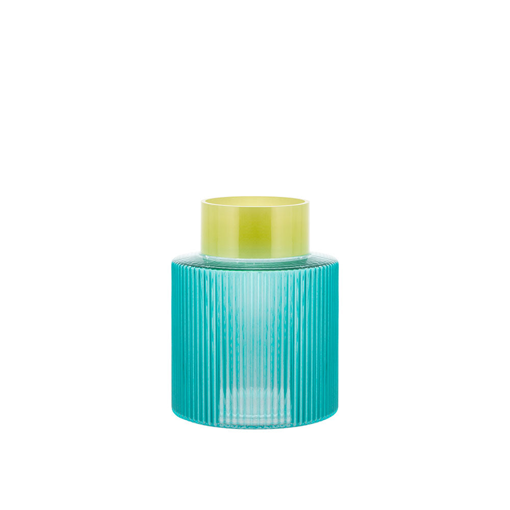 - Material: jarrón de vidrio, de dos tonos con cuerpo ranurado. Se recomienda lavar a mano.
