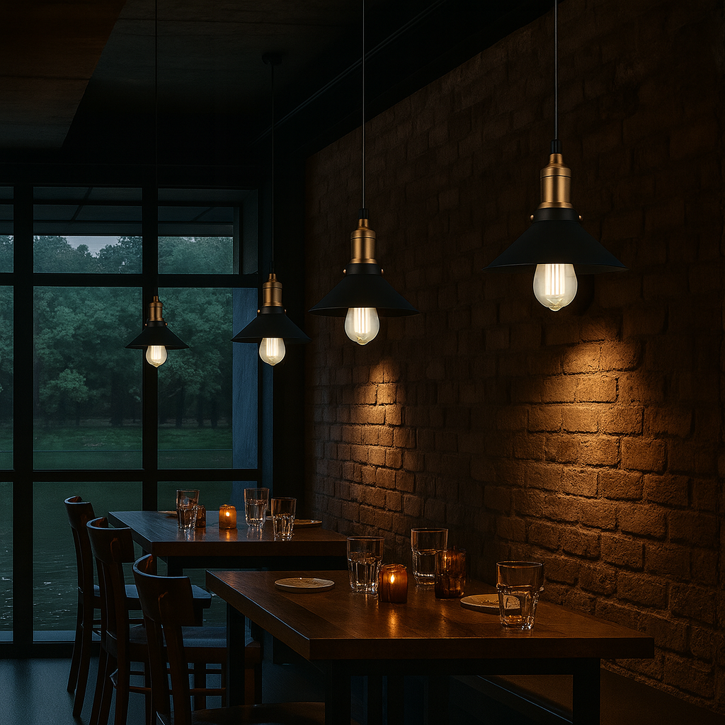 Lámpara que se caracteriza por su estilo industrial, complementándose adecuadamente a cualquier espacio.